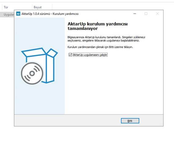 · Kurulum tamamlandığında **AktarUp uygulamasını çalıştır** seçili kalsın.