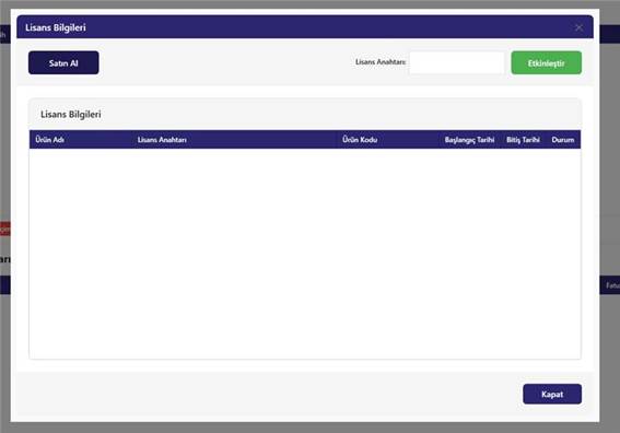 · Bu durumda **Lisans Bilgileri** ekranından etkinleştirme işlemini tamamlayın veya satın alma formunu doldurun.