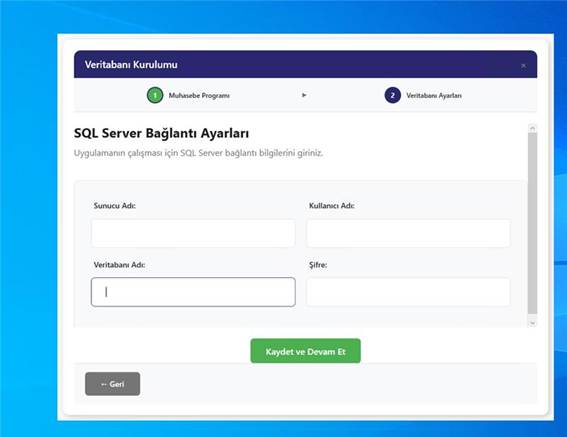 - SQL Server erişim bilgilerini temin edin. (Sunucu, Kullanıcı, Şifre, Veritabanı)