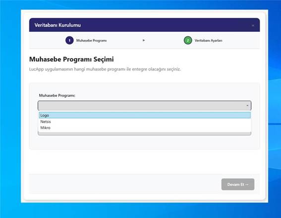 · Entegrasyon yapılacak muhasebe programını listeden seçin: **Logo**, **Netsis** veya **Mikro**.