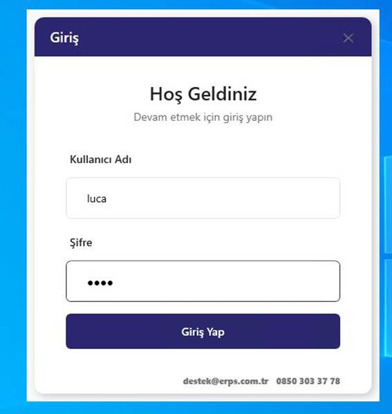 - Lisans veya giriş sorunu yaşarsanız destek mailine başvurun: destek@erps.com.tr veya 0850 303 37 78.