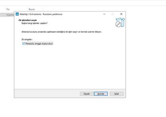 · İsteğe bağlı olarak **Masaüstü simgesi oluşturulsun** seçeneğini işaretleyebilirsiniz.
